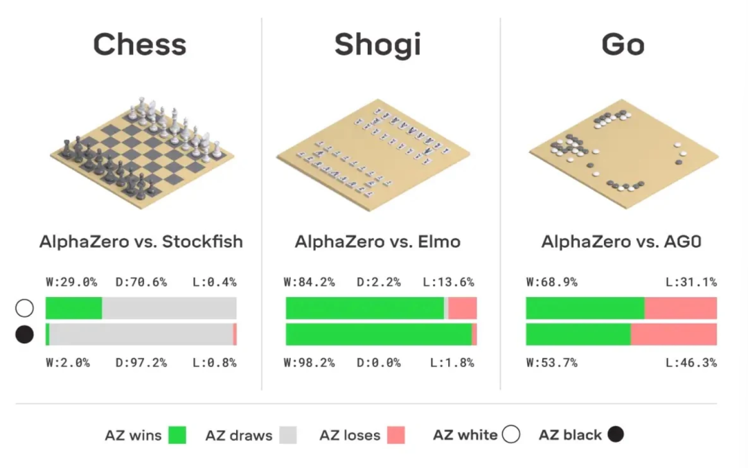 在國(guó)際象棋、將棋比賽中,AlphaZero輕易擊敗了人類世界冠軍。在圍棋比賽中,它也擊敗了人工智能AlphaGo Zero