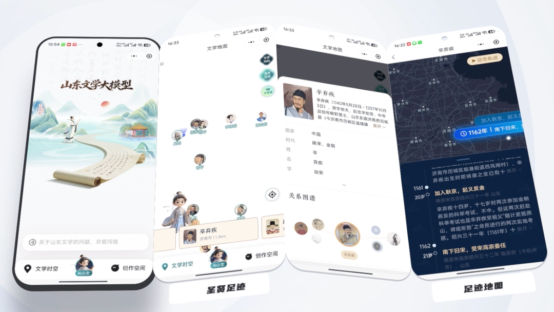 山東文學(xué)大模型依托齊魯文化大模型的強(qiáng)大技術(shù)底座,以豐富的山東文化數(shù)據(jù)庫為核心訓(xùn)練語料,匯聚了齊魯大地源遠(yuǎn)流長(zhǎng)的文學(xué)瑰寶。其中,“文學(xué)地標(biāo)”復(fù)刻故居書院,虛擬地圖一鍵抵達(dá);智能數(shù)字人“AI小文”身居C位,智能互動(dòng)在線問答,與你暢享齊魯文思,千問千解皆有回響;“圣賢足跡”帶你穿越數(shù)字時(shí)空,與辛棄疾共酌、同蒲松齡話異;“VR文學(xué)館”1:1復(fù)刻山東文學(xué)館,帶你沉浸式逛館,閱盡文學(xué)史詩;“創(chuàng)作空間”方便每位文學(xué)愛好者隨時(shí)隨地上傳文字作品,提筆續(xù)傳齊魯文脈。山東文學(xué)大模型致力于技術(shù)驅(qū)動(dòng)山東文學(xué)實(shí)現(xiàn)數(shù)字化蝶變、智能化新生,為用戶打造一個(gè)無界的文學(xué)殿堂。