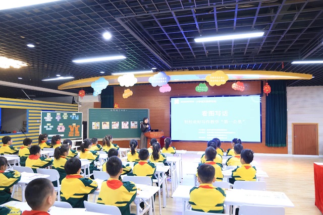 論壇現(xiàn)場,昌平區(qū)育新實驗小學師生進行的看圖寫話公開課