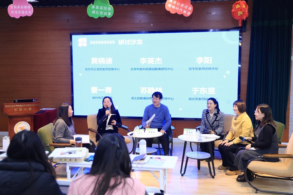 本次研討論壇緊扣“讓孩子輕松走好寫作之路,樂于表達,喜愛寫話”的核心目標,北京師范大學吳欣歆、北京市教科院基礎教育研究中心李英杰、昌平區(qū)教師進修學校李陽、順義教育研究和教師研修中心蘇靜林、延慶教師研修中心于東昱、徐州市云龍區(qū)教師發(fā)展中心黃曉迪、徐州市漢景小學曹一青等教育工作者,圍繞多個核心話題展開專題研討。教研論壇前開展了兩堂看圖寫話公開課,以《寫作力進階 看圖寫話》為教學材料,選擇《自制綠豆冰棒》和《愛模仿的小豬》兩課,由兩位年輕教師分別帶領北京昌平區(qū)育新實驗小學2個班的學生,通過“找找要素—選好關聯(lián)—使用貼紙—輕松表達—寫下成篇”步驟,直觀地呈現(xiàn)系統(tǒng)化教學方法的課堂實踐成效,受到與會嘉賓的一致好評。
